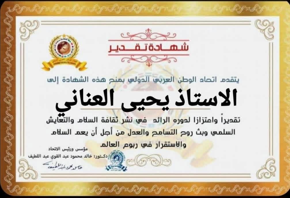 رئيس اتحاد الوطن العربي الدولي الدكتور خالد محمود عبد اللطيف يمنح شهادة تقدير للرئيس التنفيذي لائتمان الشركات في البنك الزراعي المصريitihadworld13/12/2025تكريمات