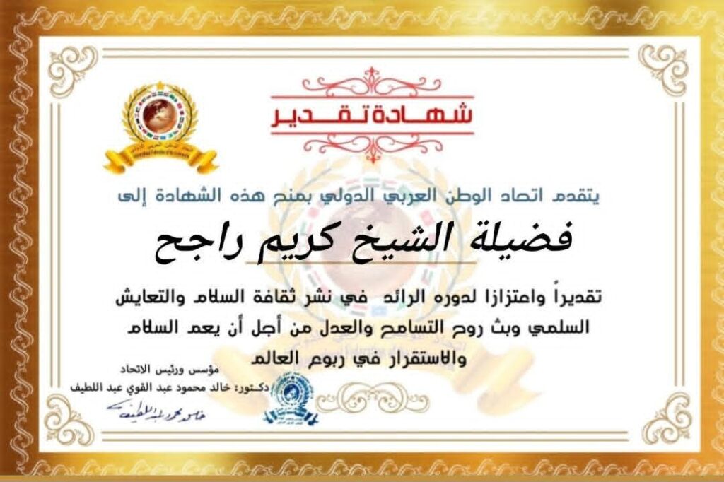 رئيس اتحاد الوطن العربي الدولي الدكتور خالد محمود عبد اللطيف يمنح شهادة تقدير لشيخ مشايخ قراء القران الكريم في الجمهورية العربية السوريةitihadworld14/12/2025تكريمات