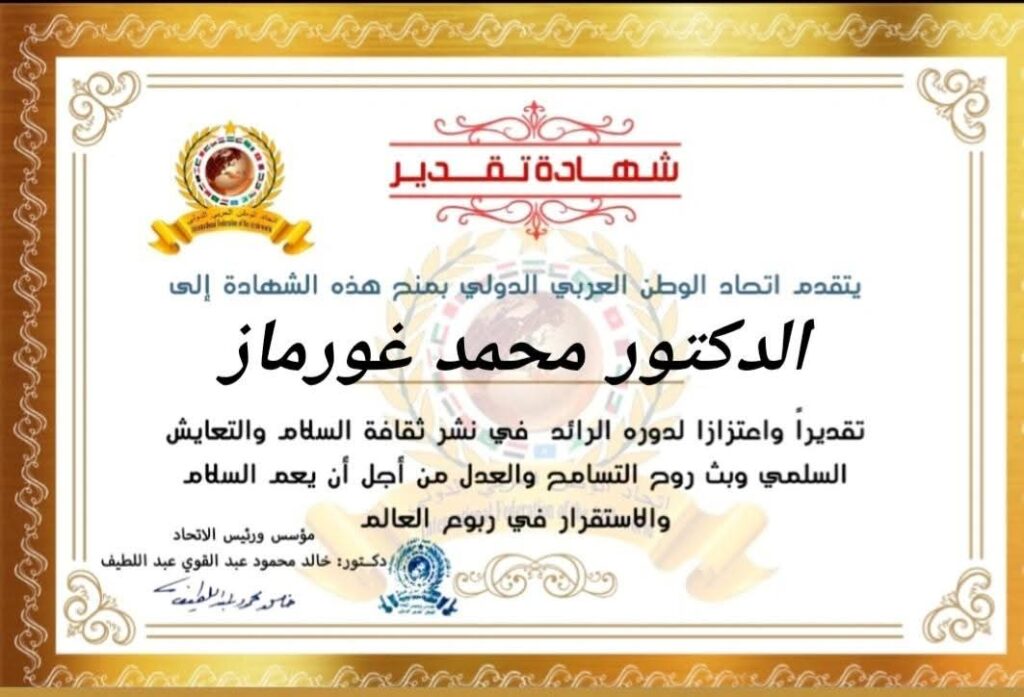 رئيس اتحاد الوطن العربي الدولي الدكتور خالد محمود عبد القوي عبد اللطيف يمنح شهادة تقدير للدكتور رئيس الجامعة الإسلامية العالمية في اسطنبولitihadworld17/12/2025تكريمات