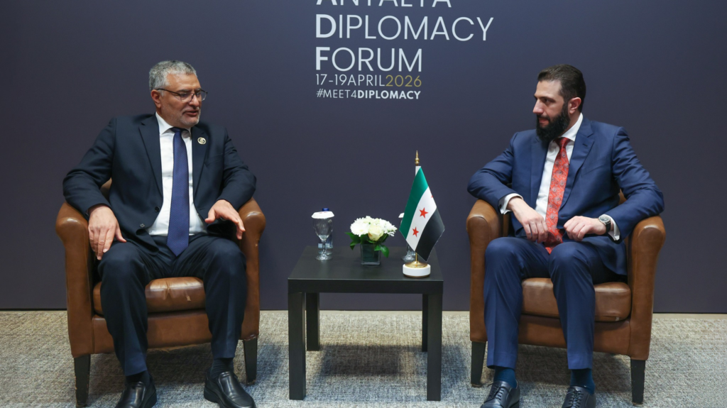اجتمع السيد الرئيس أحمد الشرع مع رئيس المجلس الأعلى للدولة الليبية محمد تكالة، بحضور وزير الخارجية السيد أسعد الشيباني ورئيس الاستخبارات العامة حسين السلامة، على هامش أعمال منتدى أنطاليا الدبلوماسي.
