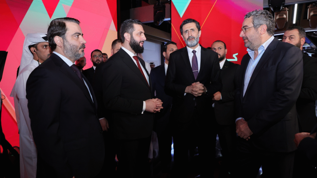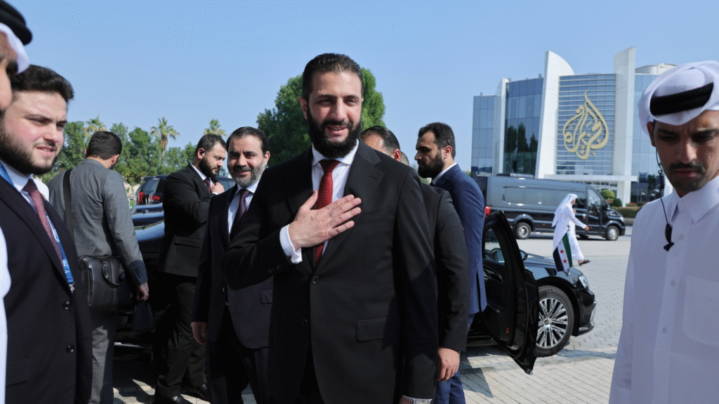 زار السيد الرئيس أحمد الشرع مقرّ قناة الجزيرة في العاصمة القطرية الدوحة، حيث التقى المدير العام لشبكة الجزيرة الإعلامية، الشيخ ناصر بن فيصل آل ثاني، والعاملين في القناة، واطّلع على أقسامها وآليات العمل الإعلامي، بحضور وزير الخارجية والمغتربين السيد أسعد الشيباني، وذلك خلال زيارته الرسمية إلى دولة قطر للمشاركة في منتدى الدوحة 2025.