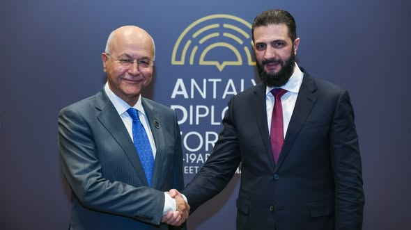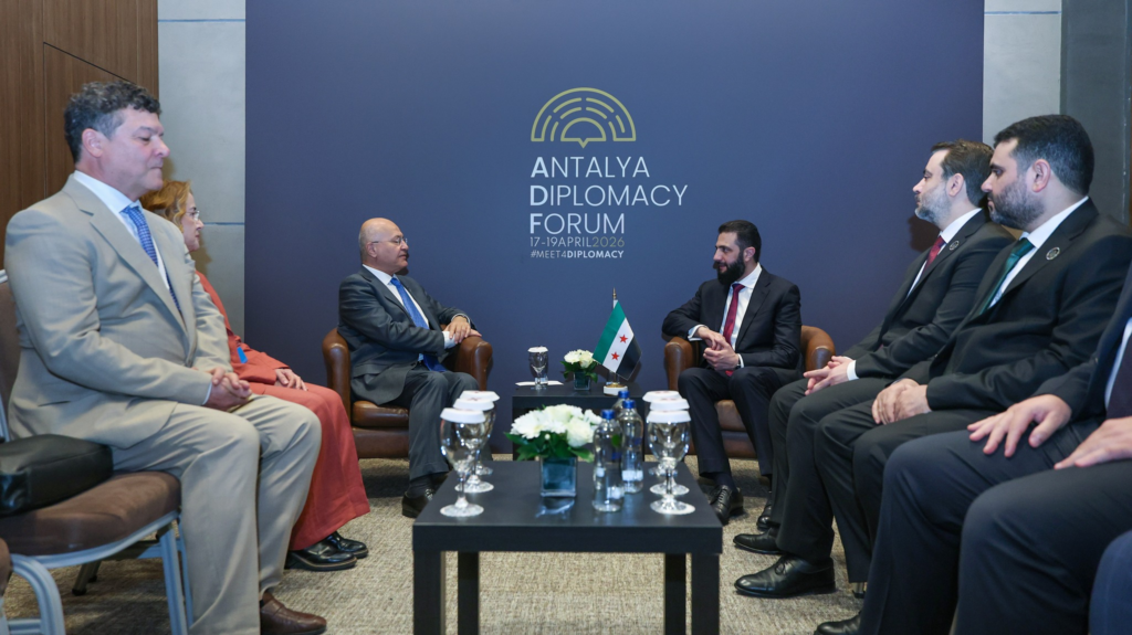 التقى السيد الرئيس أحمد الشرع اليوم المفوض السامي للأمم المتحدة لشؤون اللاجئين السيد برهم صالح، على هامش أعمال منتدى أنطاليا الدبلوماسي.