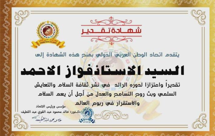 مؤسس ورئيس اتحاد الوطن العربي الدولي الدكتور خالد محمود عبد القوي عبد اللطيف يمنح شهادة تقدير لرئيس اتحاد نقابات العمال في الجمهورية العربية السوريةitihadworld15/12/2025تكريمات