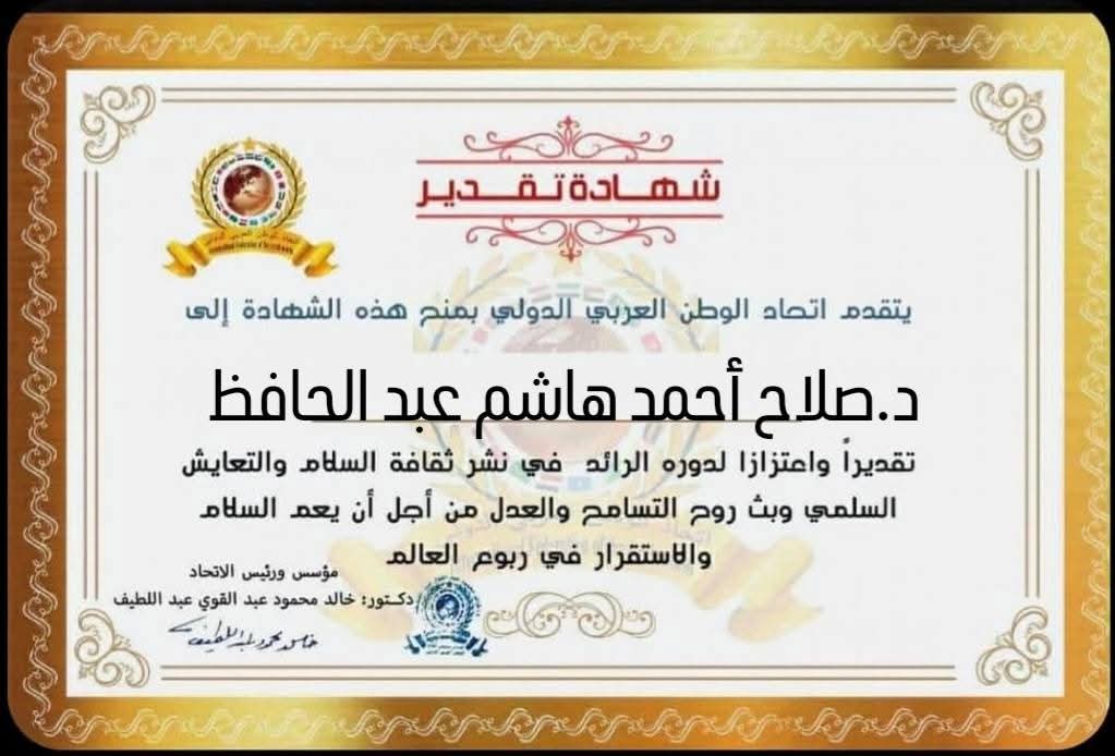 مؤسس ورئيس اتحاد الوطن العربي الدولي يمنح شهادة تقدير للسيد محمدي الني أمين عام مجلس الوحدة الاقتصادية العربية بجامعة الدول العربيةitihadworld13/03/2026تكريمات