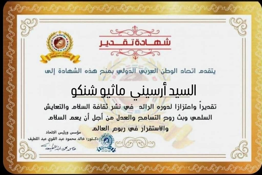 مؤسس ورئيس اتحاد الوطن العربي الدولي يمنح شهادة تقدير للسيد أرسيني ماثيو شنكو القنصل العام لروسيا ومدير البيت الروسي بالإسكندرية بجمهورية مصر العربيةitihadworld19/03/2026تكريمات